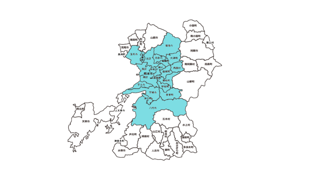 熊本市、玉名市、菊池市、合志市、上益城郡、宇城市、八代市 など